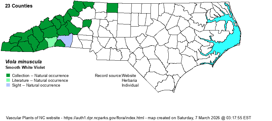 General note on Viola: In 2009-10 B.A. Sorrie (website map editor) went through the whole collection at NCU, annotating all specimens against those verified by experts in the genus. The range maps in RAB (1968) have been changed accordingly. More recently, Harvey Ballard and colleagues are in the process of revising all Eastern and Southeastern Viola, and have annotated all specimens at NCU in July 2024. They recognize additional species not in RAB or in previous editions of Weakley et al.; we will follow updated editions of Weakley et al. in recognizing them. Species range maps have been adjusted to account for identification changes. | |