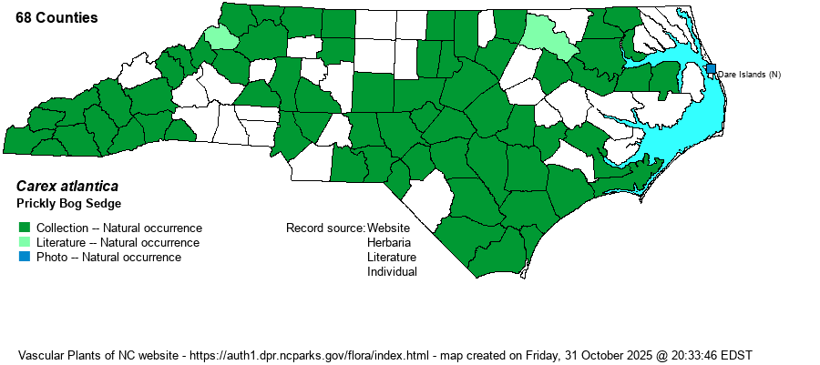 | Taxonomic Comments | Includes Carex incomperta.  Note that C. atlantica ssp. capillacea has been elevated to full species status as C. howei.