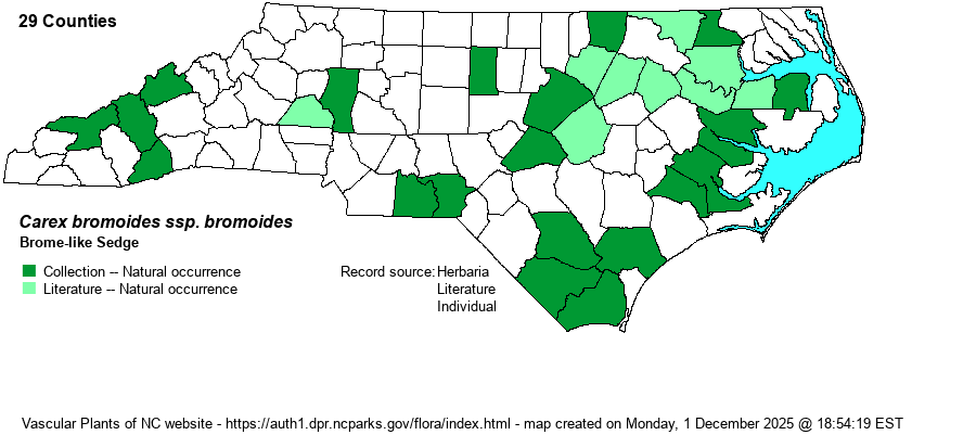| Taxonomic Comments | Carex bromoides ssp. montana was split off in a 1990 paper.