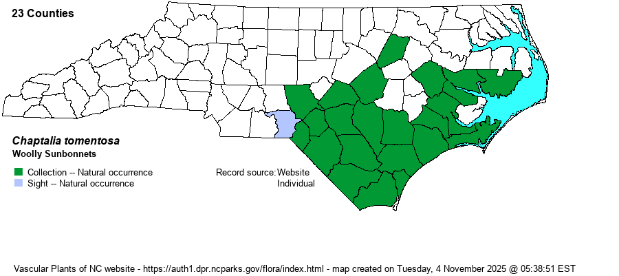 | Distribution | Coastal Plain (including the Sandhills); absent from the northern and northeastern portion of the state; ranges north only to Nash, Pitt, Beaufort, and Hyde counties.