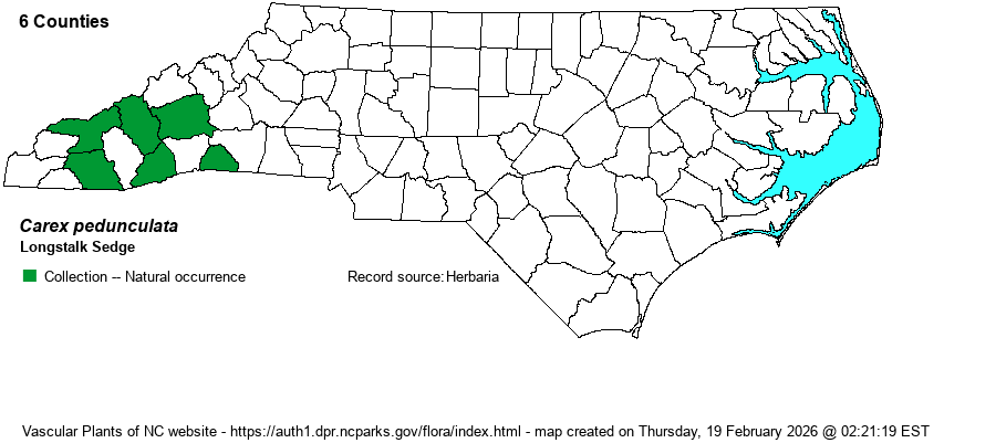 | Taxonomic Comments | Carex pedunculata var. erythrobasis occurs in Korea. Thus, the full species is an example of eastern Asian--eastern North American disjunction.
