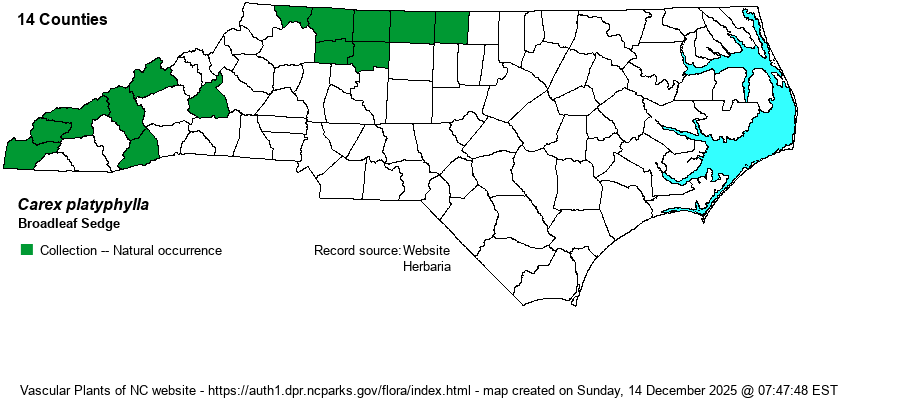 ME to southern Que. and WI, south to northwestern SC, TN, and MO. The SC record was uncovered in 2018 in a search of Carex specimens at CLEMS. | |
