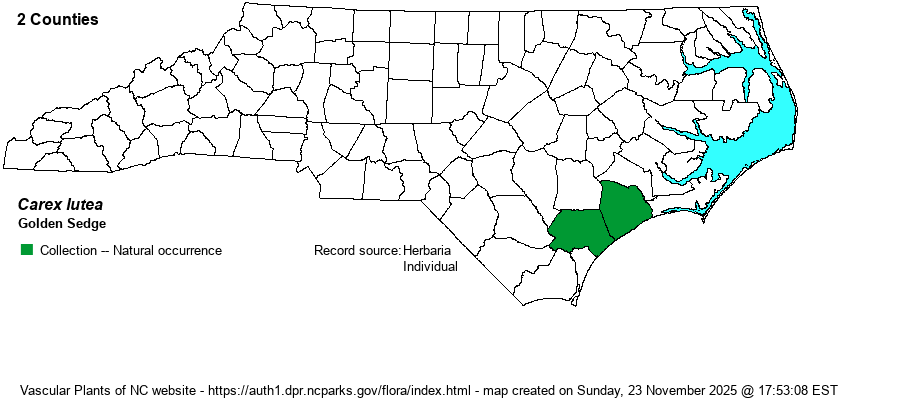 | Distribution | Southern outer Coastal Plain only. In NC the species is known from only two counties.