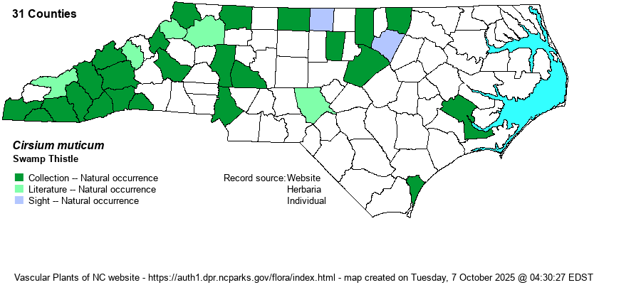 Habitat | Generally a wetland thistle, found in wet to damp soil of various types of swamps and swampy openings, wet meadows, marshes, and seepage slopes. | |