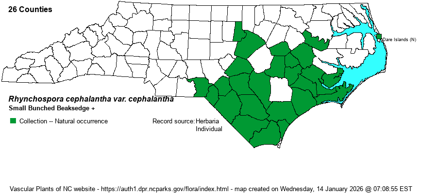 | Rhynchospora cephalantha var. cephalantha | > | Rhynchospora cephalantha var. pleiocephala | Gleason (1952) | |