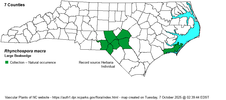Members of the genus Rhynchospora -- mainly called beaksedges but also called beakrushes -- are mostly Coastal Plain in distribution and are important members of our longleaf pine savannas, flatwoods, streamheads, depression ponds, Carolina bays, and beaver ponds. They vary from small and wiry to large and coarse. Keys concentrate on features of the achenes (seeds) and the shape and arrangement of the flower clusters (spikelets). The seeds may or not have bristles at their base; bristle number, length, and toothing are critical characters. Size and shape of the seed beaks is also critical. The drawings in Godfrey & Wooten (1979) are extremely helpful. The genus now includes Dichromena, the white-topped sedges. | |