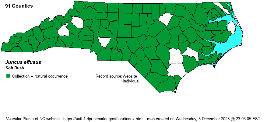 | Distribution | Throughout the state. One of the most widespread and common plants in the NC flora, certainly found in all counties.
