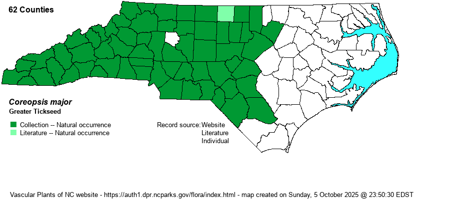 Coreopsis major | > | Coreopsis major var. major | Vascular Flora of the Southeastern States (Cronquist 1980, Isely 1990) | |