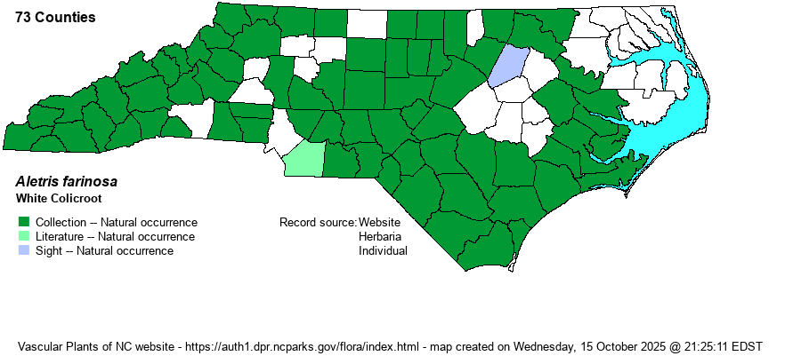 Other Common Name(s) | Mealy Colicroot, Unicorn-root, True Unicorn, White Stargrass (a very poor name used mostly for Hypoxis species) | |