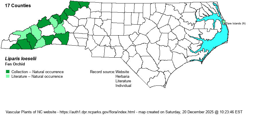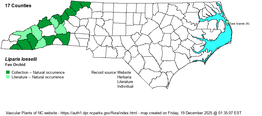 | Habitat | This is a species of small isolated wet places, most frequently found in wooded seeps at moderate to high elevations. It can also occur in wet meadows or other damp ground over mafic rocks, very rare conditions. On the Outer Banks, it is found in a "mucky bay swamp" (Weakley 2018), but called a "freshwater seepage swamp" by Sorrie (in prep.). This orchid thus occurs on higher pH soil conditions than most others in the family. | |