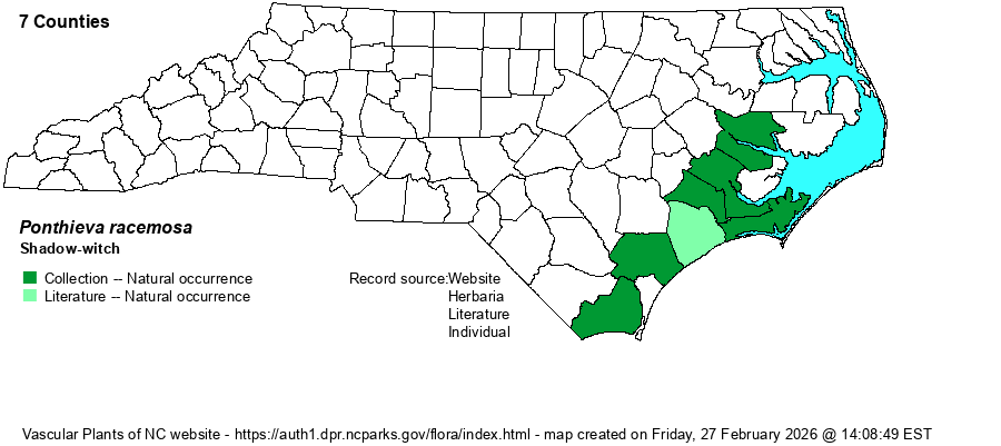 | Distribution | Present only in the southeastern portion of the Coastal Plain, from Beaufort County south to the SC state line. As it is known from a few southeastern VA counties, it potentially could be found in the northeastern Coastal Plain in NC.