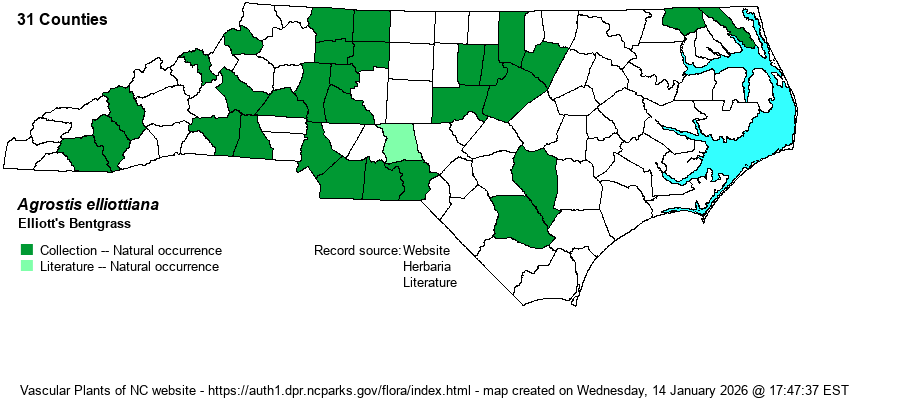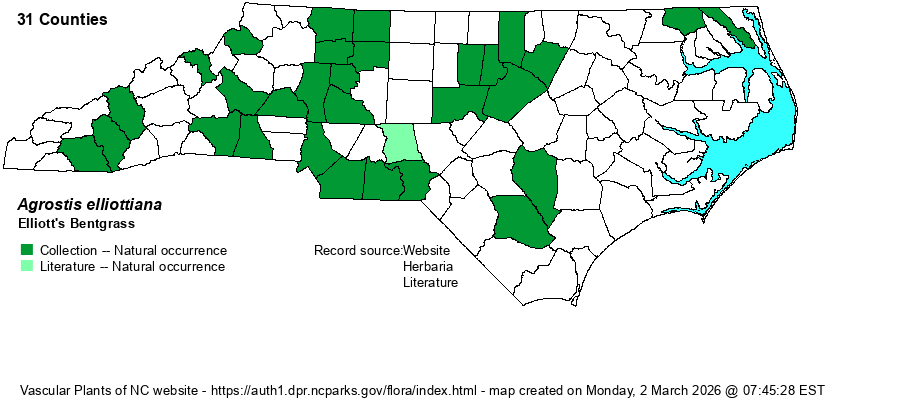 | Distribution | Mountains and Piedmont; a few records scattered on the Coastal Plain. The various gaps are likely not meaningful.