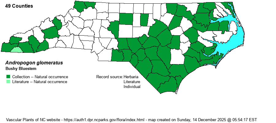 | Andropogon glomeratus | = | Andropogon glomeratus var. glomeratus | Flora of Virginia | |