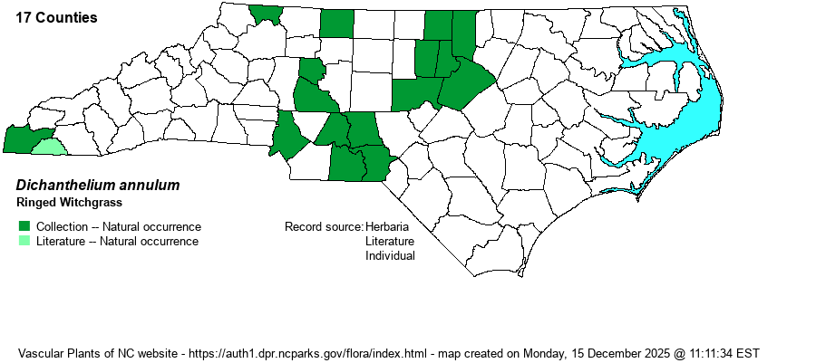 | Distribution | Mostly the Piedmont. Specimens from Alleghany, Cherokee, and Mecklenburg counties (SERNEC) have not been examined; the Jones specimen has, by R. LeBlond in 2022, and determined it to be D. mattamuskeetense. The report from Clay County is highly plausible and needs to be verified.