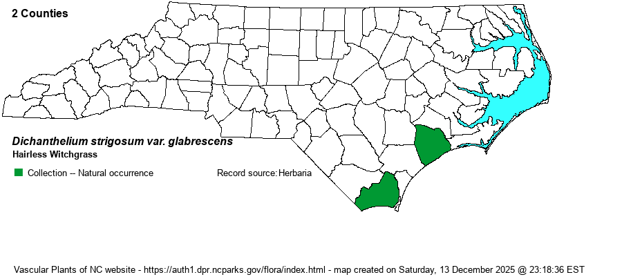 | Dichanthelium strigosum var. glabrescens | = | Panicum polycaulon | Hitchcock & Chase (Manual of US Grasses) | |