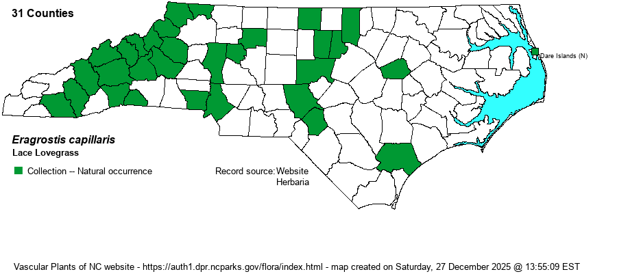 | Abundance | Fairly common to frequent in the Mountains, infrequent to frequent in the Piedmont (at least locally), very rare to rare in the Coastal Plain and the Outer Banks. | |