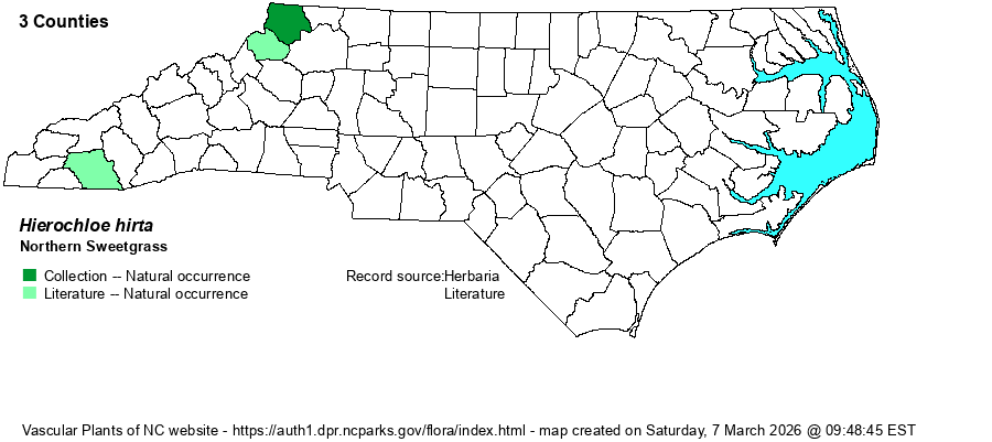 | Taxonomic Comments | A synonym, long used by botanists in North America is Hierochloe odorata. Another is H. odorata ssp. hirta. Another is Anthoxanthum hirtum.