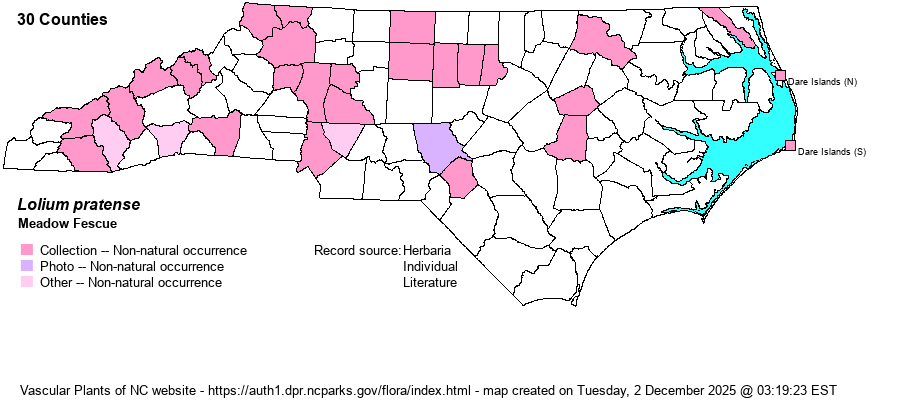| Lolium pratense | = | Schedonorus pratensis | Flora of North America (1993b, 1997, 2000, 2002a, 2002b, 2003a, 2004b, 2005, 2006a, 2006b, 2006c, 2007a, 2009, 2010) | | | Lolium pratense | = | Schedonorus pratensis | | | | Lolium pratense | = | Schedonorus pratensis | | | | Lolium pratense | = | Schedonorus pratensis | | | | Lolium pratense | = | Schedonorus pratensis | Tucker (1996)=Z. Key based in part on C and X. | | | Lolium pratense | = | Festuca pratensis | Gleason and Cronquist (1991) | | | Lolium pratense | = | Festuca pratensis | | | | Lolium pratense | = | Festuca pratensis | Tucker (1996)=Z. Key based in part on C and X. | | | Lolium pratense | < | Festuca elatior | Fernald (1950) | , misapplied | | Lolium pratense | < | Festuca elatior | Small (1933, 1938) | , misapplied | | Lolium pratense | < | Festuca elatior | Wofford (1989) | , misapplied | | Lolium pratense | < | Festuca elatior | Flora of West Virginia | , misapplied | | Lolium pratense | = | Festuca elatior var. pratensis | Gleason (1952) | | | Lolium pratense | < | Festuca pratensis | Godfrey and Wooten (1979, 1981) | | | Lolium pratense | = | Festuca elatior | Hitchcock & Chase (Manual of US Grasses) | , misapplied | | Source: Weakley's Flora |