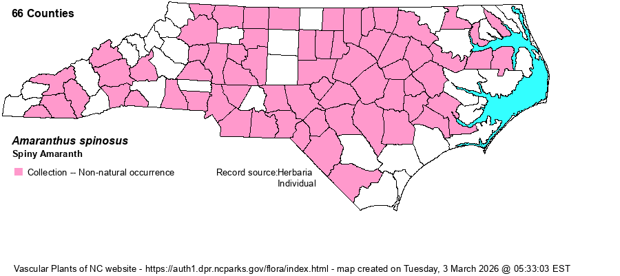 Native of tropical America; in N.A. ME to Man. south to FL and TX; also CA. | |
