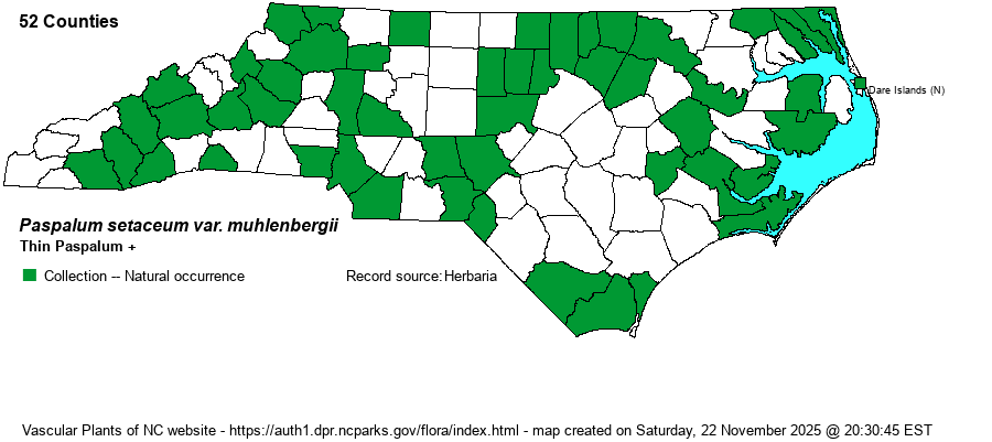 | Paspalum setaceum var. muhlenbergii | < | Paspalum setaceum | Flora of Virginia | |