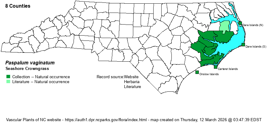 | Distribution | Outer Coastal Plain and Outer Banks/barrier islands. Ranges north to Tyrrell and Dare counties. A specimen reportedly at USDA website is not supported by a collection at SERNEC.