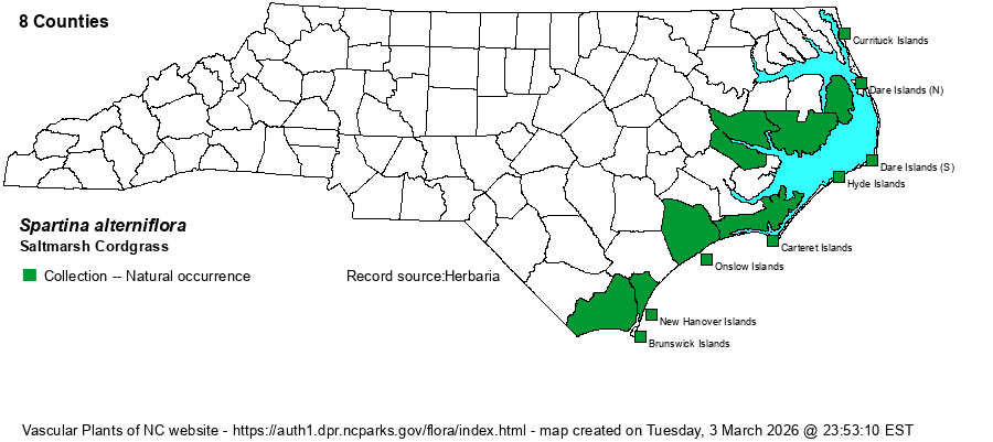 | Distribution | Outer Coastal Plain, Outer Banks, and barrier islands.