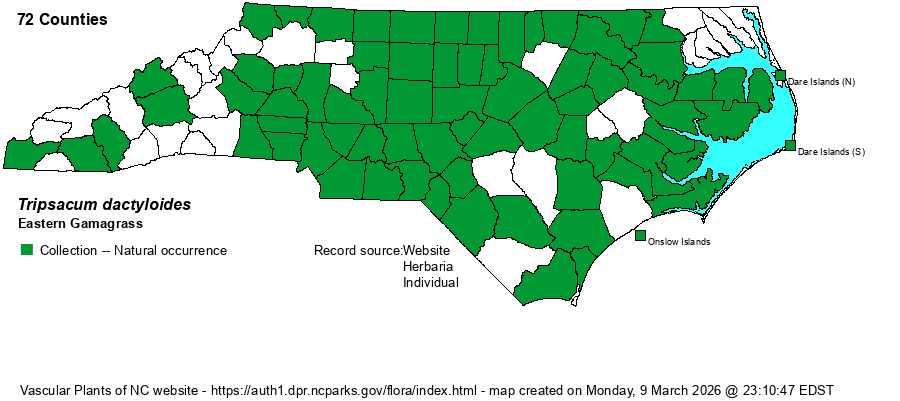 | Abundance | Frequent to common in most of the Piedmont and Coastal Plain, except uncommon in the Mountains. Where found, plants may be locally abundant. With specimen records for 71 counties, the species clearly has an S5 rank, not S4 as assigned by the NCNHP. | |