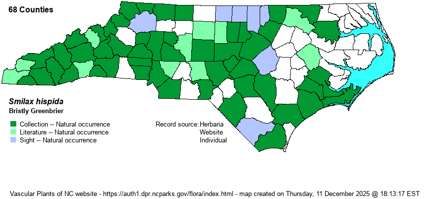 | Smilax hispida | = | Smilax tamnoides | Flora of North America (1993b, 1997, 2000, 2002a, 2002b, 2003a, 2004b, 2005, 2006a, 2006b, 2006c, 2007a, 2009, 2010) | , misapplied | | Smilax hispida | = | Smilax tamnoides | Godfrey and Wooten (1979, 1981) | , misapplied | | Smilax hispida | = | Smilax tamnoides | Kartesz (1999) | , misapplied | | Smilax hispida | = | Smilax tamnoides | | , misapplied | | Smilax hispida | = | Smilax tamnoides | Wofford (1989) | , misapplied | | Smilax hispida | = | Smilax tamnoides | Wunderlin & Hansen Flora of Florida (3) | , misapplied | | Smilax hispida | = | Smilax tamnoides | Godfrey (1988). Key for the woody species based in part on Godfrey (1988). | , misapplied | | Smilax hispida | = | Smilax tamnoides | Godfrey (1988). Key for the woody species based in part on Godfrey (1988). | , misapplied | | Smilax hispida | > | Smilax tamnoides var. hispida | Fernald (1950) | | | Smilax hispida | > | Smilax tamnoides var. tamnoides | Fernald (1950) | | | Smilax hispida | > | Smilax hispida var. australis | Small (1933, 1938) | | | Smilax hispida | > | Smilax hispida var. hispida | Small (1933, 1938) | | | Source: Weakley's Flora |