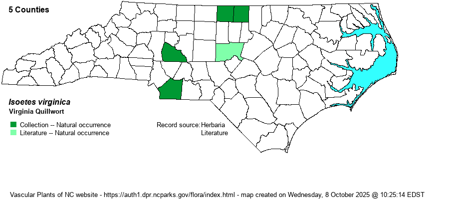 This is a highly limited species in overall range, occurring only in central VA and central NC.