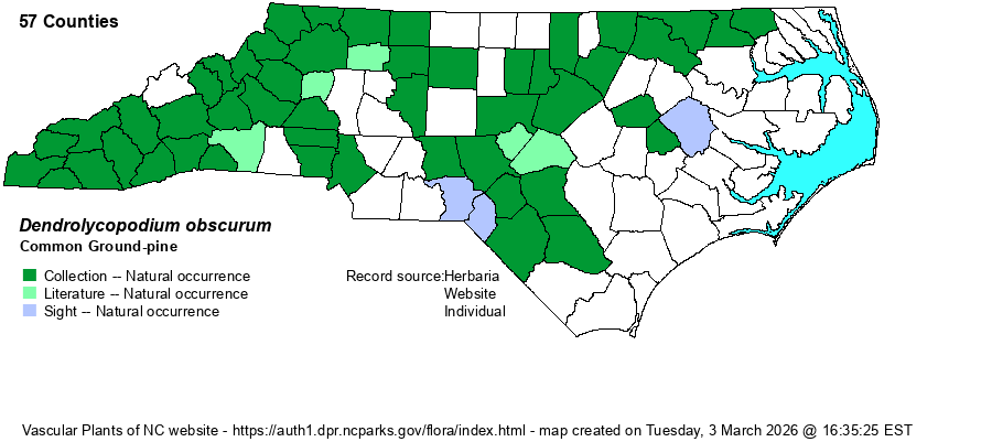 | Dendrolycopodium obscurum | = | Lycopodium obscurum var. obscurum | | |