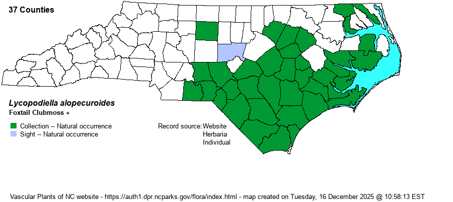 | Taxonomic Comments | This species and L. prostrata are often included within the same species; this was named as Lycopodium alopecuroides in older references.