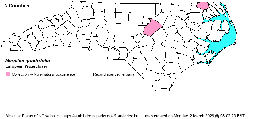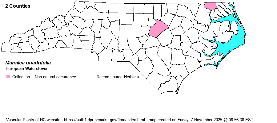 | Account for European Waterclover - Marsilea quadrifolia L. | Only member of Marsilea in NC. | ||||||||