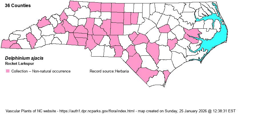 | Delphinium ajacis | = | Consolida ajacis | Flora of North America (1993b, 1997, 2000, 2002a, 2002b, 2003a, 2004b, 2005, 2006a, 2006b, 2006c, 2007a, 2009, 2010) | | | Delphinium ajacis | = | Consolida ajacis | | | | Delphinium ajacis | = | Consolida ajacis | | | | Delphinium ajacis | = | Consolida ajacis | | | | Delphinium ajacis | = | Consolida ajacis | Flora of Virginia | | | Delphinium ajacis | = | Consolida ajacis | Wunderlin & Hansen Flora of Florida (3) | | | Delphinium ajacis | = | Delphinium ambiguum | Gleason and Cronquist (1991) | | | Delphinium ajacis | = | Consolida ambigua | Wofford (1989) | | | Source: Weakley's Flora |