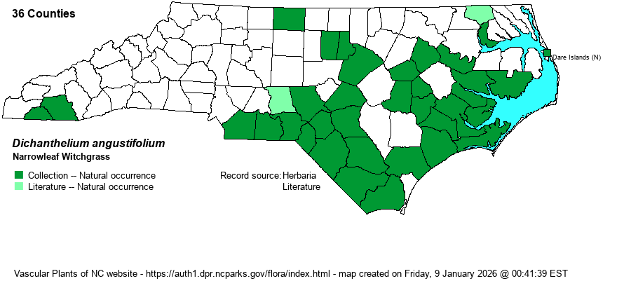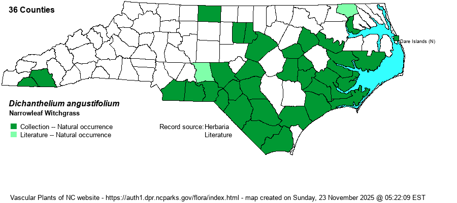 | Dichanthelium angustifolium | = | Panicum angustifolium | Hitchcock & Chase (Manual of US Grasses) | |
