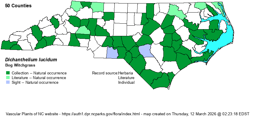 | Dichanthelium lucidum | > | Panicum lucidum var. lucidum | Hitchcock & Chase (Manual of US Grasses) | |