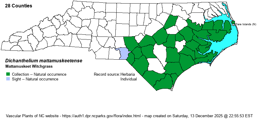 | Dichanthelium mattamuskeetense | > | Panicum clutei | Hitchcock & Chase (Manual of US Grasses) | |