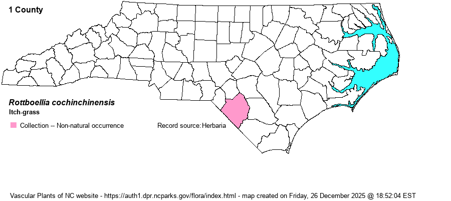 | Distribution | So far documented from Robeson County only: soybean field, 1.7 miles NW of Rowland, 5 Nov. 1984 (D.T. Patterson s.n. (DUKE). Other collections from the same site later in the same month.