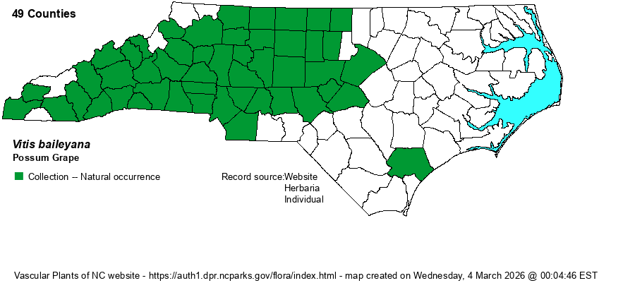 Owing to difficulty of identification of nearly all Vitis species from photographs, for now no iNaturalist photo reports are included on the range maps. In fact, very few of these have been given a Research Grade status of approval by an expert. | |