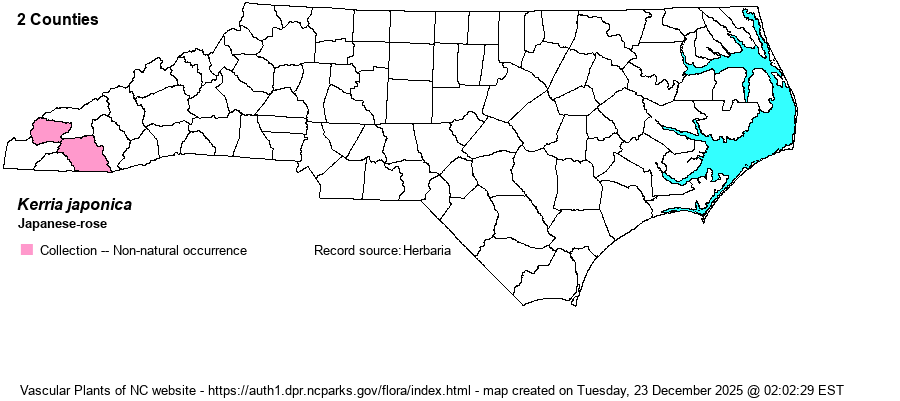 | Distribution | Collections of escaped plants are from Graham and Macon counties, from 1980-88. Specimens from Gaston and Wake counties are from cultivated plants.
