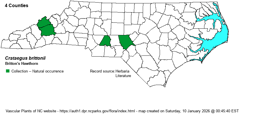 | Taxonomic Comments | As mentioned above, this taxon is very closely related to One-flowered Hawthorn (C. uniflora), and Lance (2014) simply has it as C. uniflora var. brittonii. Weakley (2018) does have it split as a species, however. This taxon was not mentioned in older references such as RAB (1968), being subsumed within C. uniflora.