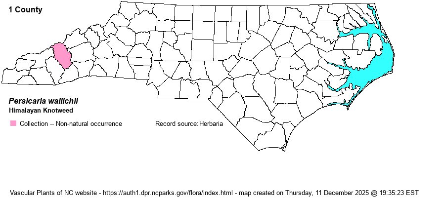 Native of the Himalayan region; in N.A. in St. Pierre et Miquelon, MA, NC, CA, OR, B.C. | |