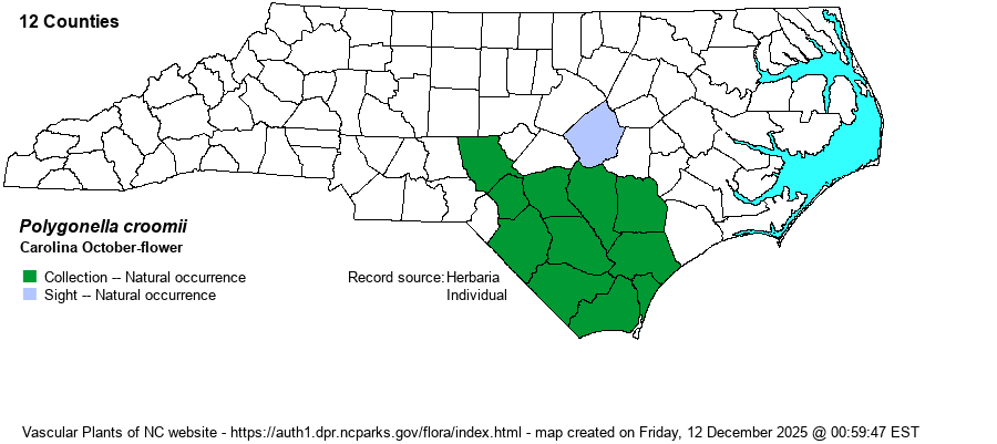 | Polygonella croomii | = | Polygonella polygama var. croomii | Flora of North America (1993b, 1997, 2000, 2002a, 2002b, 2003a, 2004b, 2005, 2006a, 2006b, 2006c, 2007a, 2009, 2010) | | | Polygonella croomii | = | Polygonella polygama var. croomii | Ronse Decraene, Hong, & Smets (2004) Brandbyge in Kubitzki, Rohwer, & Bittrich (1993). Key adapted from FNA and other sources. | | | Polygonella croomii | = | Polygonella polygama var. croomii | Ronse Decraene, Hong, & Smets (2004) Brandbyge in Kubitzki, Rohwer, & Bittrich (1993). Key adapted from FNA and other sources. | | | Polygonella croomii | < | Polygonella polygama | | | | Polygonella croomii | < | Polygonella polygama | Radford, Ahles, and Bell (1968) | | | Polygonella croomii | < | Polygonella polygama | Ronse Decraene, Hong, & Smets (2004) Brandbyge in Kubitzki, Rohwer, & Bittrich (1993). Key adapted from FNA and other sources. | | | Polygonella croomii | = | Polygonum polygamum var. croomii | | | | Polygonella croomii | = | Polygonum polygamum var. croomii | Ronse Decraene, Hong, & Smets (2004) Brandbyge in Kubitzki, Rohwer, & Bittrich (1993). Key adapted from FNA and other sources. | | | Source: Weakley's Flora |