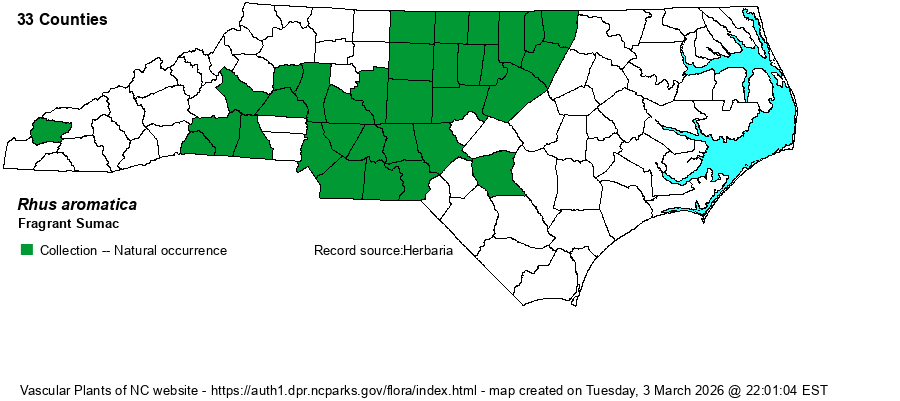 | Taxonomic Comments | The species has been segregated into several varieties; the nominate one – R. aromatica var. aromatica -- is the one found in NC.