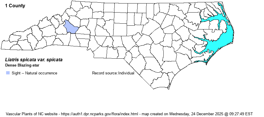 | Liatris spicata var. spicata | = | Liatris spicata var. typica | Mayfield (2002). Key adapted in large part from FNA. | |