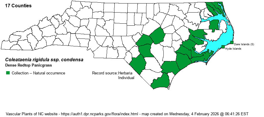 | Coleataenia rigidula ssp. condensa | = | Panicum agrostoides var. condensum | Radford, Ahles, and Bell (1968) | |