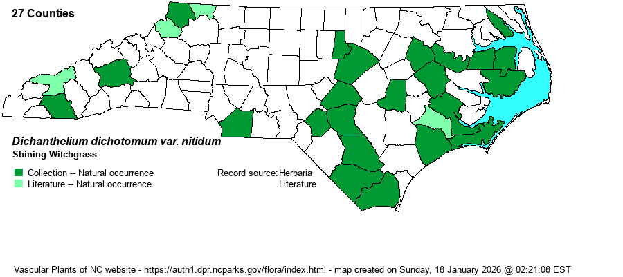 | Dichanthelium dichotomum var. nitidum | = | Panicum nitidum | Hitchcock & Chase (Manual of US Grasses) | |