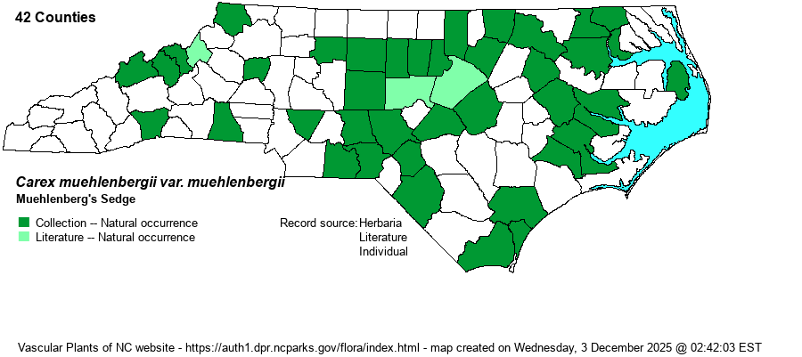 | Taxonomic Comments | The text in FNA (2002) makes plain the fact that the 2 varieties of Muehlenberg's Sedge are not very distinct.