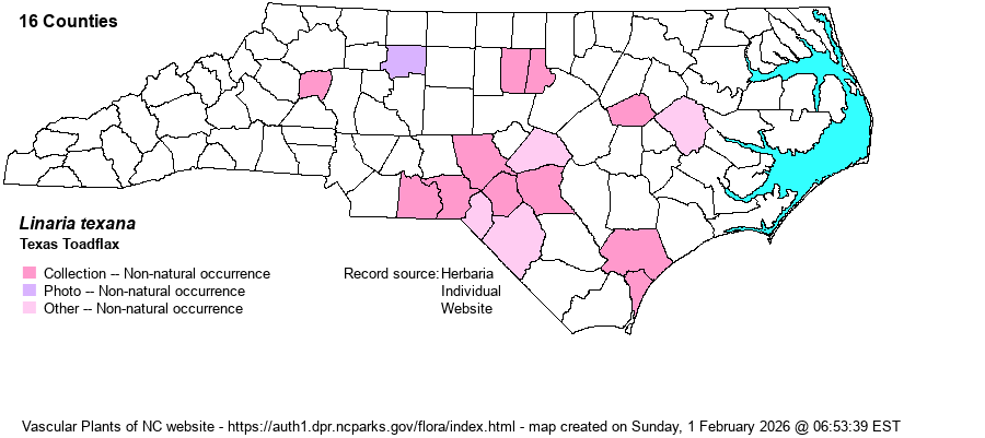 | Taxonomic Comments | Also known as Nuttallanthus texanus and L. canadensis var. texana.