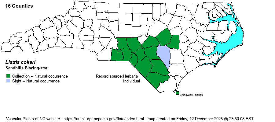 | Other Common Name(s) | Coker's Blazing-star, Coker's Gayfeather, Sandhills Gayfeather | |