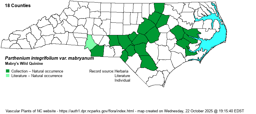 | Parthenium integrifolium var. mabryanum | > | Parthenium integrifolium var. mabryanum | Strother in FNA (2006c). | |